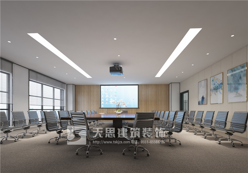 設(shè)計(jì)師在會(huì)議室設(shè)計(jì)的時(shí)候,采用從內(nèi)向外擴(kuò)張的方式對(duì)空間進(jìn)行設(shè)計(jì),以中線向外部空間進(jìn)行拓展,這樣的設(shè)計(jì)可以將空間進(jìn)行合理的劃分與運(yùn)用。