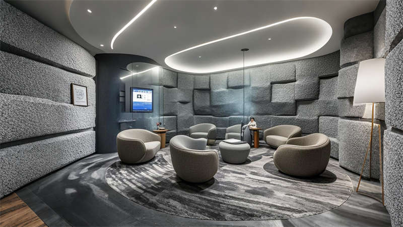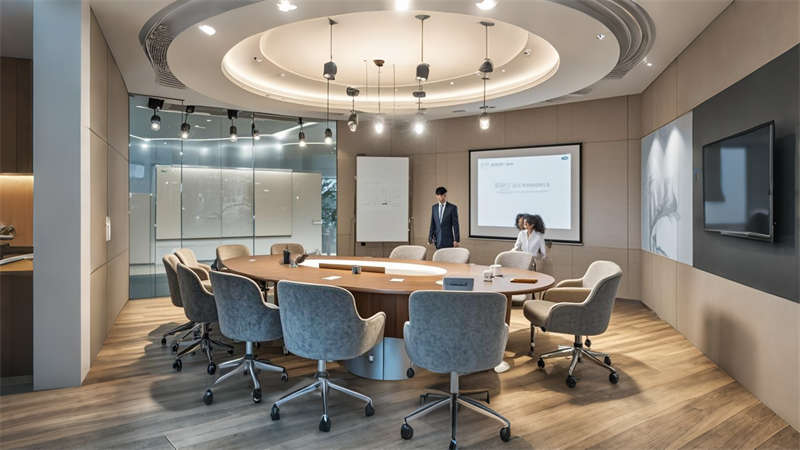 照明設(shè)計采用 3000K-4000K 色溫分區(qū)控制,重點區(qū)域設(shè)置磁吸軌道燈滿足展陳需求。聲學(xué)處理方面,關(guān)鍵會議室采用雙層中空玻璃與吸音毛氈墻面,確保 45 分貝以下靜音標(biāo)準(zhǔn)。全案貫徹 LEED 認(rèn)證標(biāo)準(zhǔn),90% 建材達(dá)到環(huán)?;厥找?,實現(xiàn)美學(xué)價值與實用功能的有機(jī)統(tǒng)一。