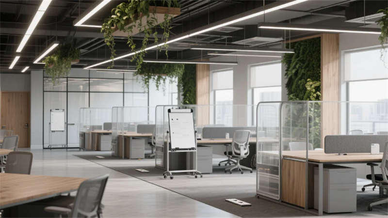 設(shè)計(jì)更以人文觸覺消解科技冰冷感:企業(yè)標(biāo)志性的霧青藍(lán)貫穿于軟裝細(xì)節(jié),4000K色溫照明呵護(hù)視覺舒適度,模塊化綠植系統(tǒng)構(gòu)建立體呼吸網(wǎng)絡(luò)。從智能調(diào)光玻璃到聲學(xué)毛氈墻面,每處創(chuàng)新皆隱于無形,讓科技真正服務(wù)于人的感知體驗(yàn)。這座合肥辦公空間,正以靜默的設(shè)計(jì)語言詮釋著未來工作場域的更多可能——當(dāng)自然、科技與人文在此共振,辦公不再是程式化的容器,而成為激發(fā)創(chuàng)造力的有機(jī)生命體。