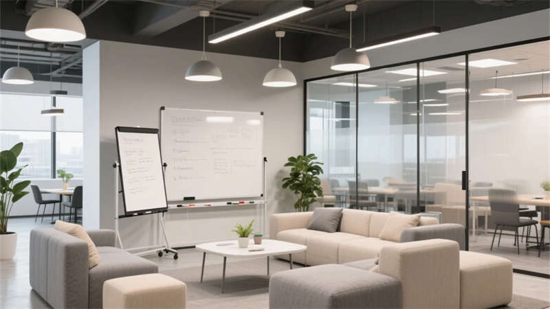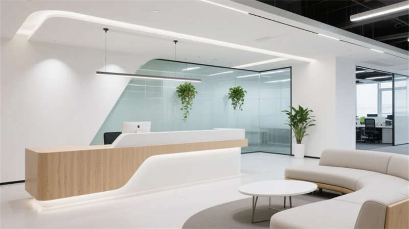 這個辦公室設計以現(xiàn)代簡約風格為核心,通過流暢線條和中性色調,打造出一個和諧而高效的工作環(huán)境。整體布局強調開放性與功能性,功能區(qū)之間無縫銜接,利用玻璃隔斷和自然光,營造通透感。接待區(qū)以溫馨氛圍迎接訪客,開放辦公區(qū)促進團隊協(xié)作,會議室提供寧靜討論空間。休息區(qū)與茶水間則融入綠植元素,為員工提供放松角落,提升日常舒適度。經(jīng)理辦公室和專注區(qū)平衡了私密需求,協(xié)作空間鼓勵創(chuàng)意交流。設計注重人性化細節(jié),如柔和燈光和懸浮家具,減少視覺雜亂,同時強化生態(tài)理念。整個空間不僅美觀實用,還體現(xiàn)了對員工福祉的關懷,營造出積極的工作氛圍。蚌埠元素貫穿始終,展現(xiàn)地方特色與現(xiàn)代美學的融合,讓辦公環(huán)境成為靈感源泉。