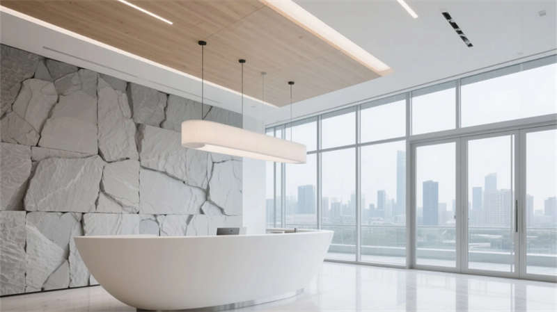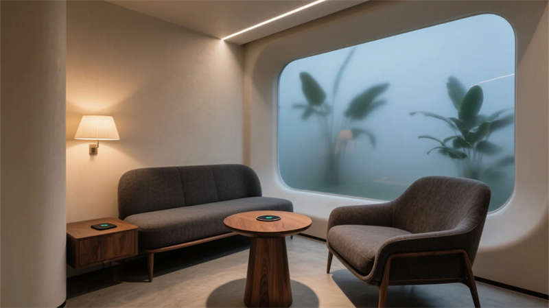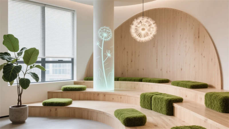 智能會議艙化身科技繭房,霧化玻璃平衡開放與隱私,觸控桌面簡化流程。貫穿始終的暖木、灰白與苔蘚綠,在全景天光下沉淀出寧靜能量。此處不僅是工作容器,更是蚌埠創(chuàng)新浪潮下,滋養(yǎng)靈感、尊重個體的未來生態(tài)聚落。