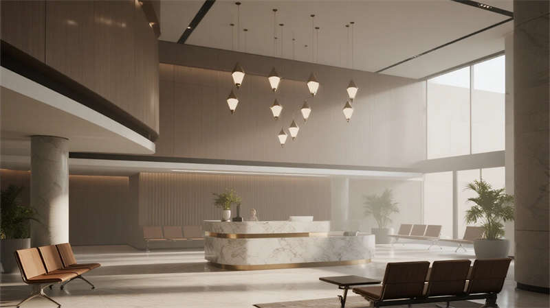 本設(shè)計以現(xiàn)代簡約風(fēng)格為核心,強(qiáng)調(diào)功能與美學(xué)的和諧統(tǒng)一,為辦公環(huán)境注入靈動活力。整體空間采用淺色調(diào)基座,搭配玻璃幕墻和金屬元素,營造通透輕盈的視覺體驗。辦公樓外觀以幾何線條勾勒城市天際線,大廳作為樞紐,以簡約接待臺和綠植迎接訪客,傳遞專業(yè)與親和力。電梯間延續(xù)寧靜氛圍,鏡面設(shè)計拓展空間感。開放辦公區(qū)注重協(xié)作,靈活布局促進(jìn)效率,自然光透過落地窗灑滿區(qū)域,綠植分隔既美觀又環(huán)保。經(jīng)理辦公室和總裁辦公室以私密性與開放性平衡,簡約家具與城市景觀結(jié)合,提升工作舒適度。會議室功能性強(qiáng),玻璃墻增強(qiáng)通透感,便于創(chuàng)意碰撞。樓頂花園作為休憩綠洲,綠色屋頂與簡約座椅提供放松空間,呼應(yīng)環(huán)保理念。設(shè)計融入蚌埠地域特色,汲取城市活力與自然元素,打造高效、舒適且可持續(xù)的辦公環(huán)境,體現(xiàn)現(xiàn)代工作方式的優(yōu)雅蛻變。