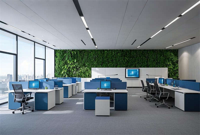 本項(xiàng)目為4500㎡現(xiàn)代簡(jiǎn)約風(fēng)格辦公樓整體設(shè)計(jì),以'高效·生態(tài)·智能'為核心設(shè)計(jì)理念??臻g采用淺灰、木色、深藍(lán)三色基調(diào),搭配企業(yè)VI系統(tǒng)的橙色點(diǎn)綴。重點(diǎn)區(qū)域配置智能照明系統(tǒng)和模塊化家具,實(shí)現(xiàn)空間靈活重組。環(huán)保建材使用率達(dá)到85%,包含竹木纖維板、低VOC涂料和再生地毯。創(chuàng)新運(yùn)用垂直綠化墻改善空氣質(zhì)量,結(jié)合全景玻璃幕墻最大限度引入自然光線。智能系統(tǒng)集成人臉識(shí)別門(mén)禁、環(huán)境監(jiān)測(cè)及會(huì)議預(yù)約系統(tǒng),打造現(xiàn)代化智慧辦公空間。功能分區(qū)涵蓋高效辦公區(qū)、智能會(huì)議系統(tǒng)、生態(tài)休閑空間三大模塊,滿足多元化辦公需求。