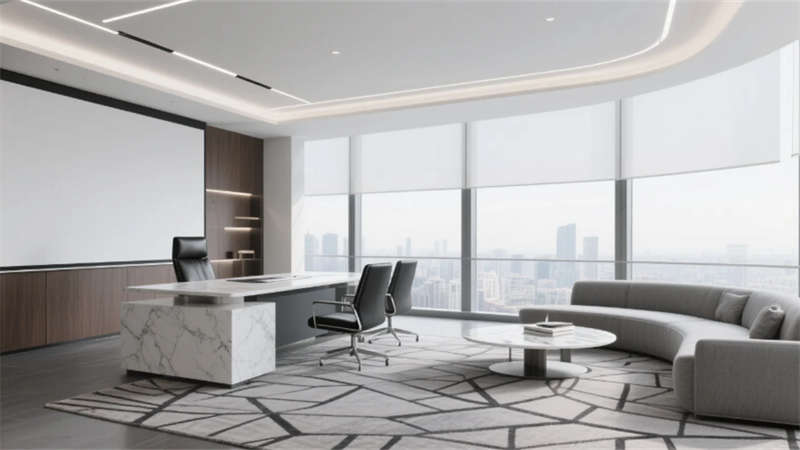 全案貫穿啞光金屬、木飾面與大理石材質(zhì)細節(jié),4000K中性光統(tǒng)一色溫,智能燈光系統(tǒng)提升能效。設(shè)計通過嚴謹?shù)木€條分割與人性化功能分區(qū),實現(xiàn)美學(xué)與實用性的深度融合,重新定義現(xiàn)代辦公空間的品質(zhì)標準。