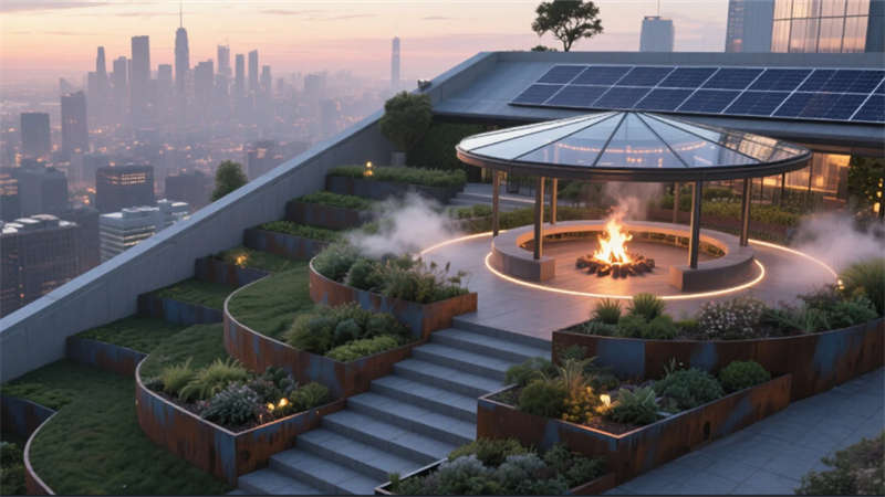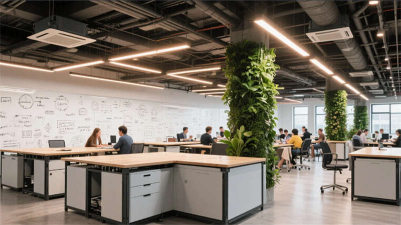 最具突破性的神經(jīng)中樞系統(tǒng)貫穿全樓,自適應(yīng)環(huán)境調(diào)節(jié)光線、溫濕度與聲景,冥想艙的仿生穹頂與創(chuàng)客空間的工業(yè)活力形成張力平衡。屋頂花園成為能量再生場(chǎng),光伏涼亭與霧森系統(tǒng)在合肥的晴空下?tīng)I(yíng)造城市綠洲。