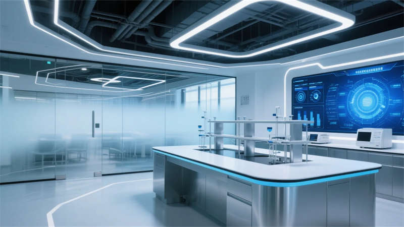 辦公空間呈現(xiàn)去中心化的未來圖景。模塊化工位可隨時(shí)重組為頭腦風(fēng)暴環(huán)島,聲學(xué)織物包裹的膠囊艙提供深度思考庇護(hù)所。最具革命性的是“實(shí)驗(yàn)室劇場(chǎng)”,研發(fā)設(shè)備的機(jī)械美學(xué)被提升為空間敘事的主角,集成于銀色島臺(tái)的精密儀器與頂部藝術(shù)化排布的管線系統(tǒng),構(gòu)成科技崇拜的現(xiàn)代祭壇。霧化玻璃墻在透明與隱私模式間瞬時(shí)切換,象征知識(shí)共享與知識(shí)產(chǎn)權(quán)保護(hù)的辯證統(tǒng)一。