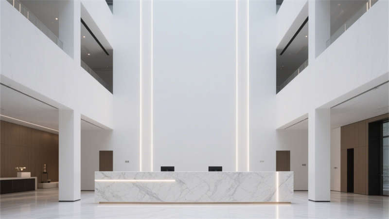 本設(shè)計(jì)延續(xù)此前辦公樓建筑的現(xiàn)代主義基調(diào),讓室內(nèi)空間與外立面設(shè)計(jì)語言形成呼應(yīng),營(yíng)造連貫且富有質(zhì)感的整體氛圍??臻g布局以 “通透流暢” 為核心,摒棄冗余裝飾,用簡(jiǎn)潔線條勾勒區(qū)域邊界,既保證各功能區(qū)的獨(dú)立性,又避免視覺上的割裂感。