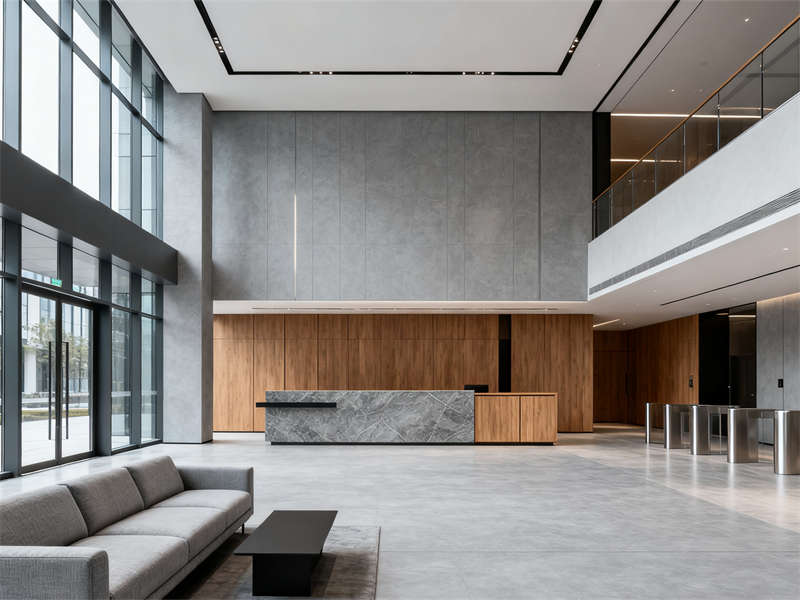 入口大堂以開闊格局為核心,淺灰地磚搭配低飽和木色前臺(tái),弱化厚重感的同時(shí),用金屬線條勾勒細(xì)節(jié),讓第一印象既專業(yè)又通透。玻璃隔斷貫穿多個(gè)區(qū)域,在走廊處搭配木色門牌,既保證采光,又通過材質(zhì)呼應(yīng)強(qiáng)化整體感,避免空間割裂。