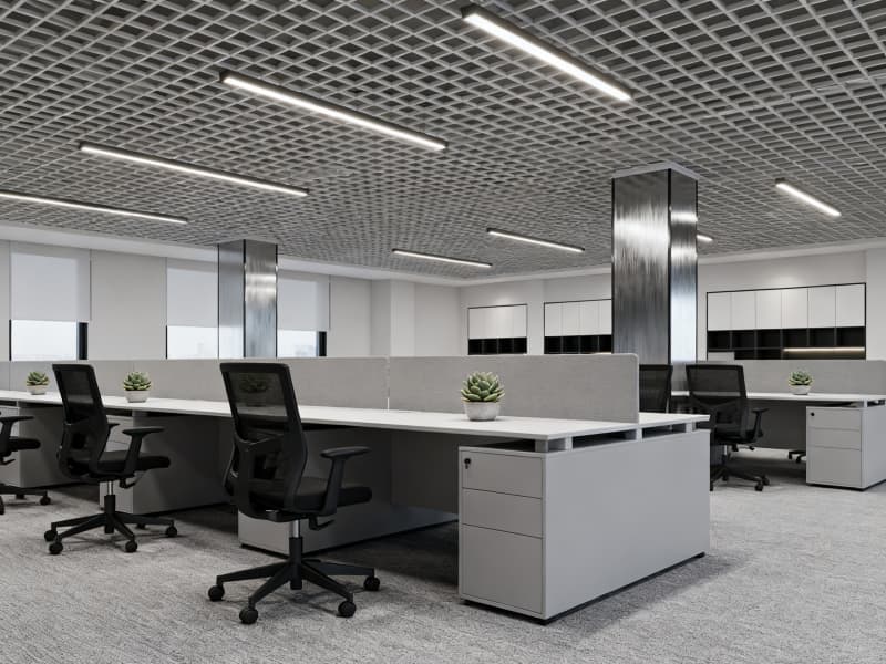 空間布局上,科學劃分接待區(qū)、開放辦公區(qū)、獨立辦公室、會議室、報告廳、休閑區(qū)、員工餐廳等功能區(qū)域,優(yōu)化垂直與水平動線設計,保證辦公效率與使用便捷性。開放辦公區(qū)注重靈活性與協作性,采用模塊化家具與可調節(jié)隔斷,適配不同團隊的辦公需求;獨立辦公室與會議室強調私密性與專業(yè)性,通過材質與燈光營造沉穩(wěn)氛圍;休閑區(qū)與員工餐廳則注重舒適性,為員工提供放松、交流的空間,平衡工作與休息。