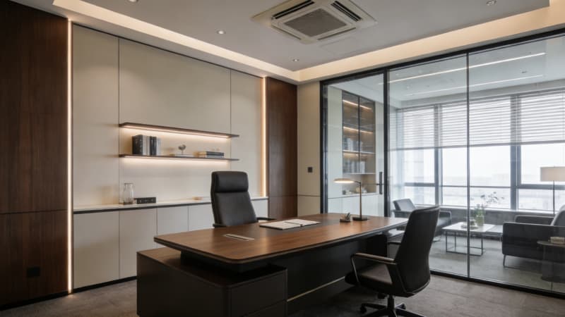 融入智能環(huán)境控制系統(tǒng),自動(dòng)調(diào)節(jié)溫濕度與燈光;搭配人體工學(xué)家具、中央新風(fēng)系統(tǒng),為員工筑牢健康屏障。整體采用現(xiàn)代簡(jiǎn)約風(fēng)格,摒棄冗余裝飾,通過(guò)色彩與材質(zhì)碰撞凸顯企業(yè)質(zhì)感,同時(shí)預(yù)留品牌文化植入空間。