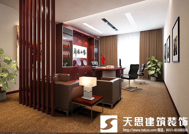 總經(jīng)理的辦公室一般都是單獨的一個房間,通常有不少企業(yè)都將高層領導的辦公室安排在一辦公大樓的最高層或平面結構最深處,目的就是創(chuàng)造一個安靜、安全、少受打擾的環(huán)境。