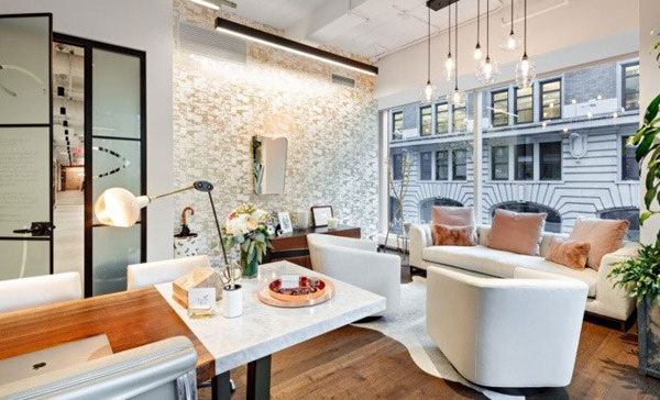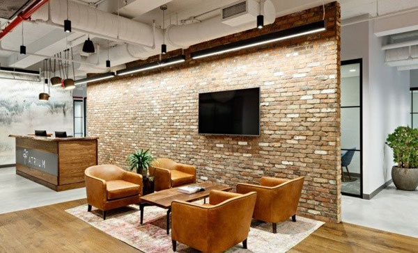 一個(gè)裸露的磚墻和水彩墻覆蓋,提供了一種溫暖的感覺(jué)。靠近接待處的是一個(gè)咖啡吧和休息室,它通向一個(gè)大型會(huì)議室。