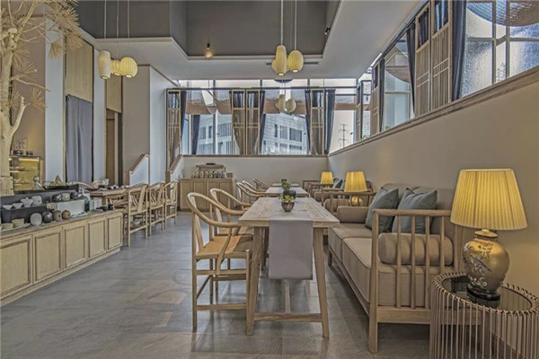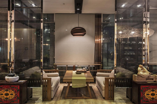 茶藝館的材質(zhì)在茶藝館的設計中,最常用的是那些有著靈性的、最為普通的自然材質(zhì),例如玻璃、涂料、青磚、石灰等,追求其表面的質(zhì)感和肌理變化。