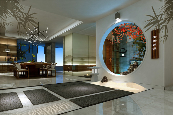 中華之大,講究以和為貴,對稱在設計中被認為是一種“和”,展現一種和諧之美。因此不論是會所裝修還是其他裝修都講究對稱設計,這種設計理念最早來源于古代道家的太極圖,講究“陰陽平衡”的對稱,并在裝飾時將“金木水火土”等五行元素融入其中。