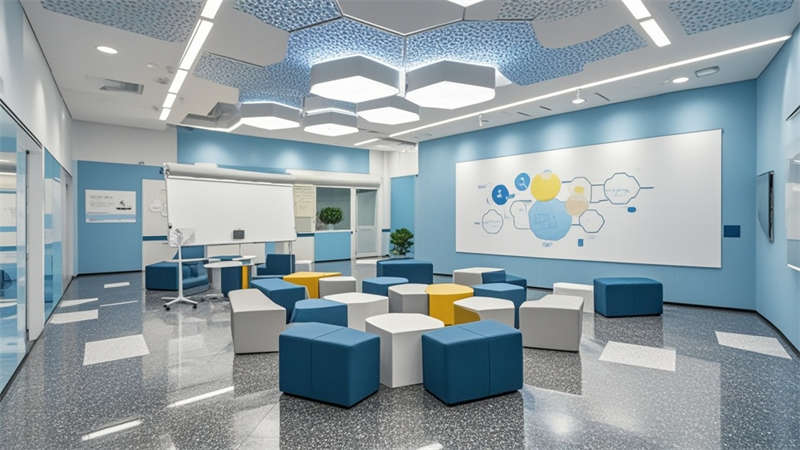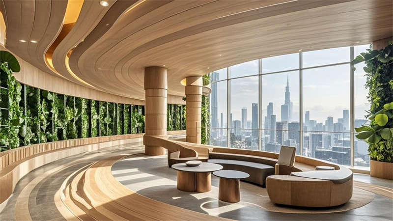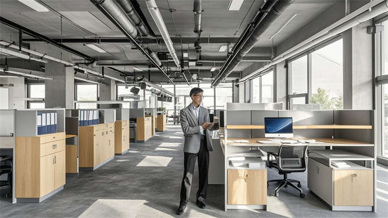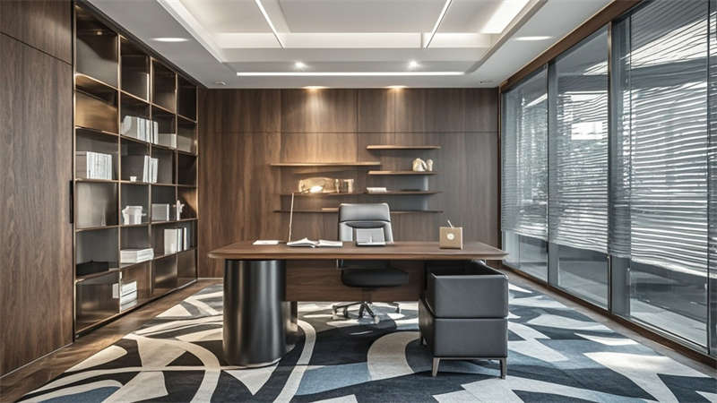 本1500㎡現(xiàn)代簡(jiǎn)約辦公室設(shè)計(jì)以'高效協(xié)作·人文關(guān)懷'為核心,采用模塊化空間布局提升使用彈性。主色調(diào)選用淺灰、白、木三色系,局部點(diǎn)綴企業(yè)深藍(lán)色強(qiáng)化品牌認(rèn)知。開放式辦公區(qū)采用1.2m×1.8m標(biāo)準(zhǔn)工位模塊,通過玻璃隔斷實(shí)現(xiàn)90%自然光滲透率。智能照明系統(tǒng)根據(jù)日照強(qiáng)度自動(dòng)調(diào)節(jié)色溫,全年節(jié)電率達(dá)35%。核心筒改造區(qū)運(yùn)用曲面木飾面弱化建筑結(jié)構(gòu),形成自然交流節(jié)點(diǎn)。聲學(xué)設(shè)計(jì)方面,蜂窩吸音板(NRC 0.85)與隔音艙(STC 52)組合控制噪音污染。茶水區(qū)采用磁吸軌道插座系統(tǒng),支持設(shè)備靈活接入。所有家具均符合WELL建筑標(biāo)準(zhǔn),辦公椅配備6向調(diào)節(jié)功能。通過BIM技術(shù)實(shí)現(xiàn)管線綜合,保留3.2米凈高營造開闊感。