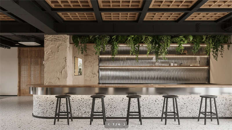 新中式工業(yè)風(fēng)骨架支撐起詩意場景,智能光療系統(tǒng)與磁吸供電科技隱于無形。云會(huì)議艙的煙雨江南數(shù)字畫卷,與夯土吧臺(tái)的粗糲質(zhì)感形成時(shí)空回響。這里不僅是效率容器,更是滋養(yǎng)人文精神的山川微縮劇場,在機(jī)械理性中重建天人合一的當(dāng)代范本。