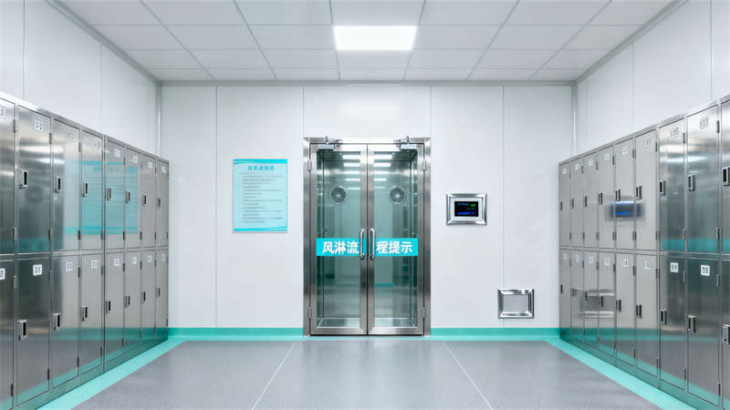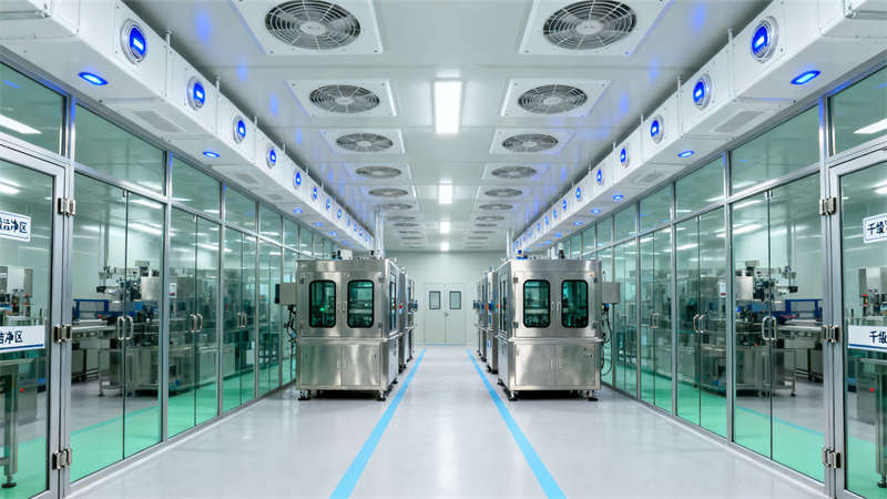 室內(nèi)空間劃分清晰,入口風(fēng)淋室作為潔凈第一道防線,搭配專屬衣柜區(qū),助力人員規(guī)范進入;核心生產(chǎn)區(qū)以通透玻璃隔斷劃分,搭配高效過濾設(shè)備,營造潔凈通透的操作環(huán)境,操作人員身著專業(yè)潔凈服,盡顯規(guī)范作業(yè)氛圍。輔助區(qū)域同樣注重細節(jié),物料暫存間采用防塵物料架與傳遞窗設(shè)計,確保物料潔凈存儲與轉(zhuǎn)運;無菌實驗室配置專業(yè)安全柜與試劑柜,滿足高潔凈等級操作需求;潔凈走廊通過清晰標(biāo)識引導(dǎo)動線,連接各功能區(qū)域,提升空間流轉(zhuǎn)效率;空調(diào)機房作為動力核心,設(shè)備布局規(guī)整,保障整體潔凈系統(tǒng)穩(wěn)定運行。?