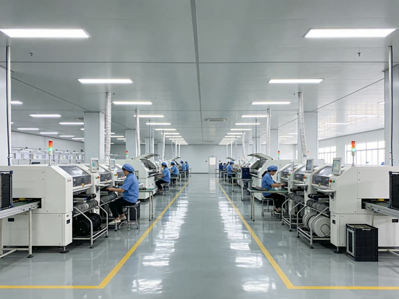 步入內部,生產區(qū)空間寬敞,為保證生產操作的精準度與高效性,采用無柱式大空間設計。頂部配備先進的照明系統(tǒng),光線均勻柔和,滿足各類電子生產工序對照明的嚴格要求。地面選用防靜電、耐磨的環(huán)氧樹脂地坪,確保電子產品生產環(huán)境的穩(wěn)定性。