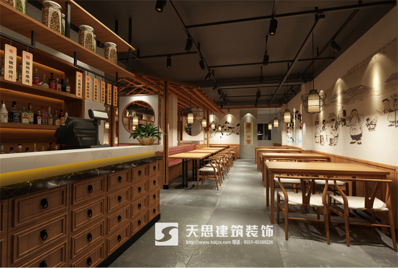 天思裝飾主要服務(wù)于合肥的餐廳設(shè)計裝修、飯店裝修、餐飲店裝修設(shè)計、中餐店設(shè)計裝修和提供更具個性主題的餐廳裝修效果圖設(shè)計,天思裝飾——專業(yè)的餐飲裝修設(shè)計公司