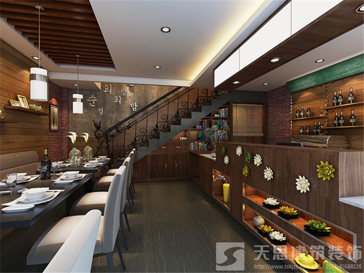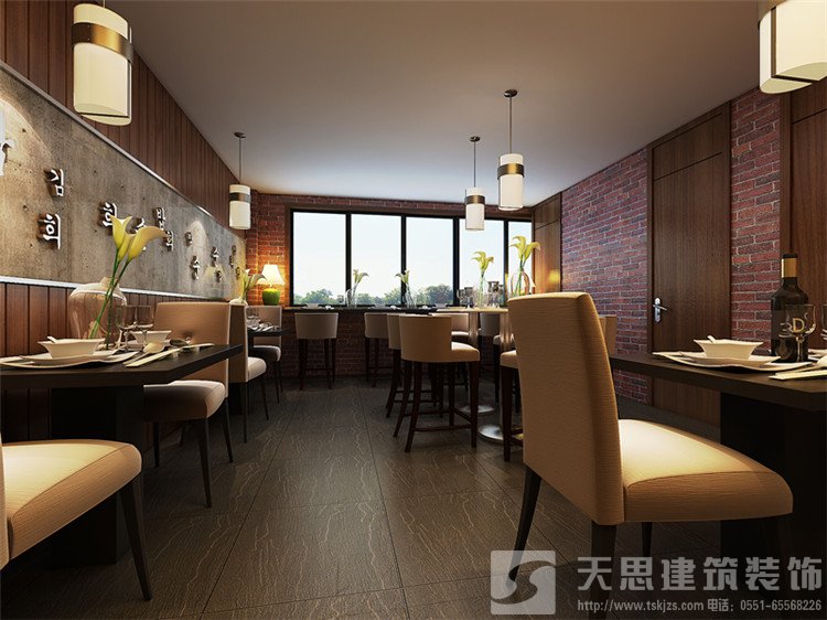 韓國(guó)紫菜包飯屬于一家連鎖店,在合肥目前有接近10家分店,在裝修風(fēng)格上結(jié)合了地域文化特點(diǎn),韓國(guó)人的居住空間比較狹小,對(duì)空間的利用非常緊湊。席地而坐的生活習(xí)慣讓他們呈現(xiàn)出一種低姿態(tài)的,貼近自然的生活形態(tài),居室的設(shè)計(jì)所呈現(xiàn)出來(lái)的是小家碧玉式的精致,沒有奢華和張揚(yáng)??臻g裝飾多采用簡(jiǎn)潔、硬朗的直線條 ,反映出現(xiàn)代人追求簡(jiǎn)單生活的居住要求,迎合了韓式家居追求內(nèi)斂、質(zhì)樸的設(shè)計(jì)風(fēng)格。