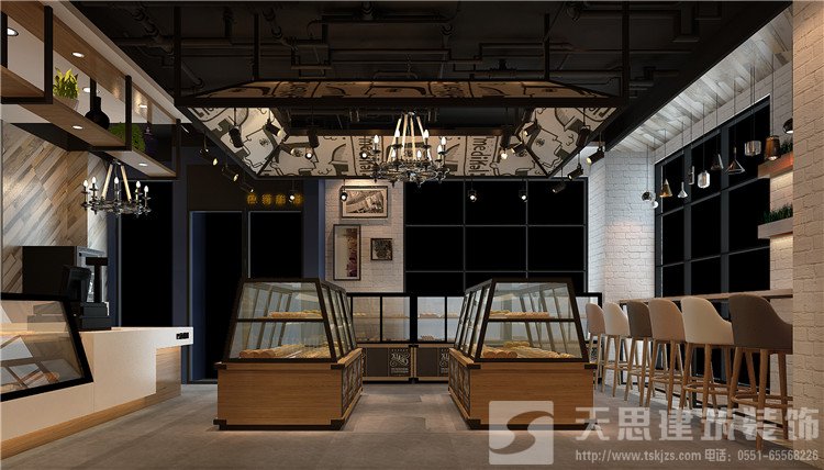 設(shè)計風格以復古的文化氣息結(jié)合現(xiàn)代的審美要求創(chuàng)造出一種具有歐洲古堡韻味、時尚個性、極具創(chuàng)意感以適應(yīng)不同人群的需求及審美的設(shè)計。空間頂部設(shè)計采用裸頂噴灰漆局部吊頂?shù)氖址?,突出重點區(qū)域,節(jié)省成本。墻面采用水泥漆、文化磚等,地面采用水泥地坪漆,整個空間采用灰色調(diào)突出展柜的木紋顏色,進而突顯產(chǎn)品,使整個空間顯得高大上。店內(nèi)以灰色調(diào)為主,采用藍綠色作為點綴,使得屋外與屋內(nèi)得到了很好的延續(xù)。