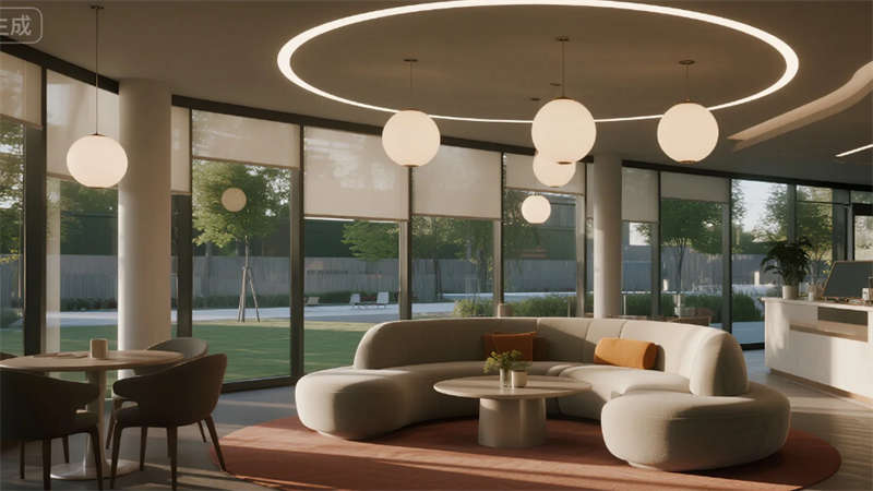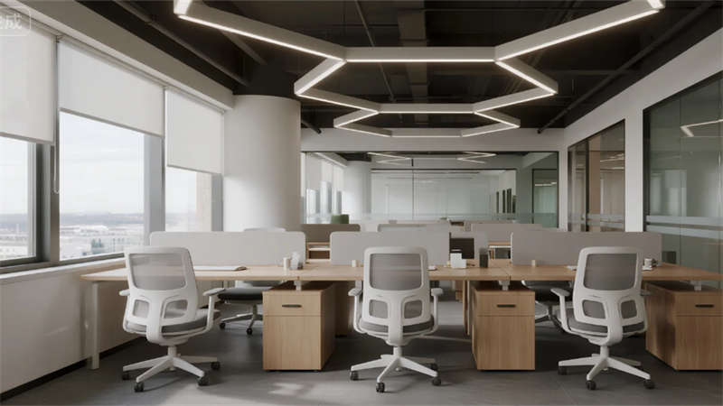 生產(chǎn)空間聚焦高效與潔凈,智能機(jī)械臂單元與模塊化管線(xiàn)系統(tǒng)滿(mǎn)足精密材料制造需求,冷色調(diào)照明強(qiáng)化科技嚴(yán)謹(jǐn)感。研發(fā)區(qū)域突破傳統(tǒng)廠(chǎng)房格局,落地窗引入自然光與園區(qū)景觀(guān),垂直綠墻凈化空氣的同時(shí)激發(fā)創(chuàng)造力。