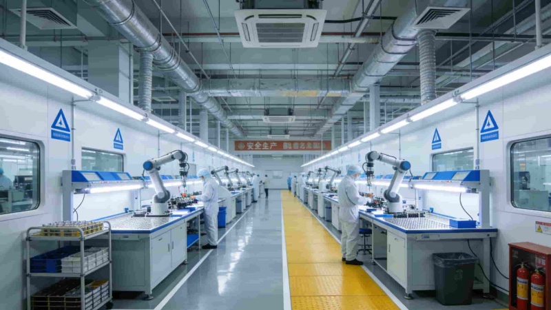生產(chǎn)區(qū)域按需分區(qū):十萬級潔凈電子車間以灰白為主調(diào),配備自動化流水線與防靜電系統(tǒng);重型設(shè)備組裝車間采用耐磨地坪與行車軌道,色彩對比鮮明。辦公區(qū)域兼顧協(xié)作與專注,開放式卡位、創(chuàng)意辦公區(qū)與研發(fā)專注艙合理布局,裸頂工藝、原木元素與綠植點綴,平衡工業(yè)感與舒適度。