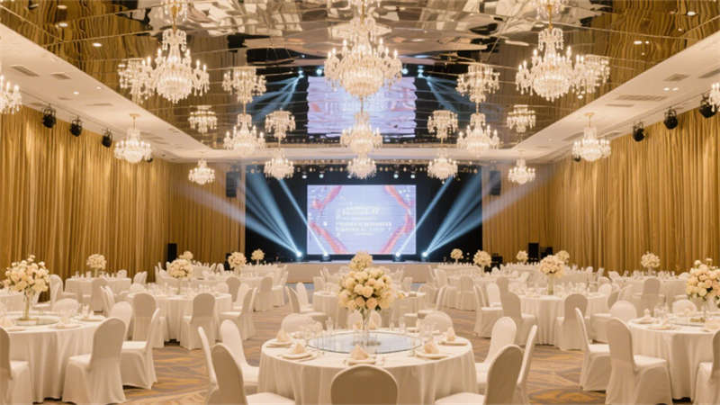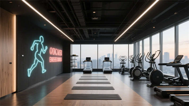 公共空間亮點(diǎn)紛呈:全日餐廳以垂直綠植墻與開放式廚房激活社交氛圍;無柱宴會(huì)廳憑借鏡面天花板與水晶吊燈陣列,打造層疊的光影盛宴;健身房通過全景落地窗將城市景觀融入運(yùn)動(dòng)場景,啞光黑器械與霓虹燈裝飾碰撞出現(xiàn)代活力。細(xì)節(jié)處更顯匠心——電梯間的金屬線條浮雕、走廊的幾何光影地毯,均以藝術(shù)化手法弱化傳統(tǒng)酒店的空間邊界。