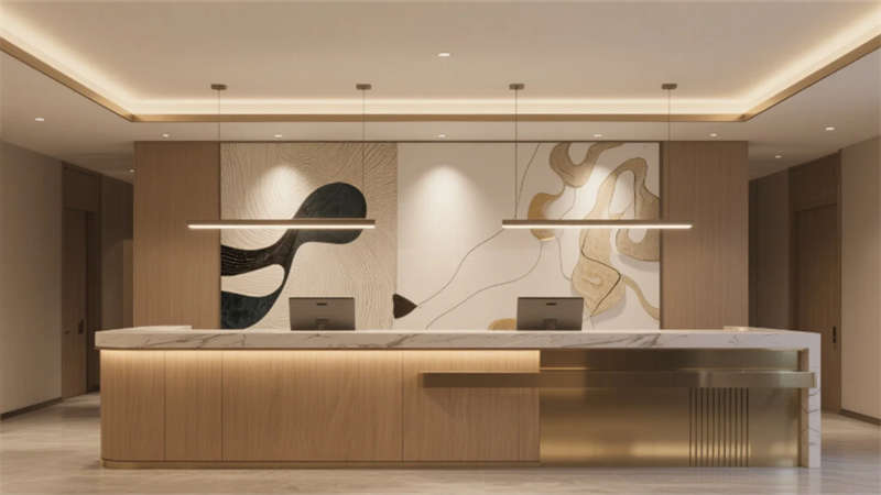 這個酒店設(shè)計以現(xiàn)代簡約風(fēng)格為核心,通過統(tǒng)一的色調(diào)和元素,創(chuàng)造出和諧而優(yōu)雅的空間體驗。大堂作為入口,以淺木色和白色為主調(diào),配以舒適的沙發(fā)和綠植,營造出welcoming的氛圍。前臺延續(xù)簡約理念,木質(zhì)柜臺和藝術(shù)細節(jié)彰顯精致感。餐廳采用開放式布局,木質(zhì)桌椅和吊燈的點綴,讓用餐時刻充滿輕松與自然氣息。酒吧區(qū)則以深色吧臺和暖光照明,提供私密而時尚的社交空間。客房設(shè)計注重舒適與隱私,大窗戶引入城市景觀,簡約家具確保寧靜的休憩環(huán)境。會議室專業(yè)而高效,中性色調(diào)和隱藏照明支持專注的商務(wù)活動。健身房融入鏡面和綠植,活力十足又不失簡約美感。水療區(qū)則強調(diào)寧靜,柔和燈光和自然元素促進身心放松。整個項目強調(diào)人與環(huán)境的連接,每個功能區(qū)都服務(wù)于寧靜與精致的整體體驗,為賓客打造難忘之旅。
