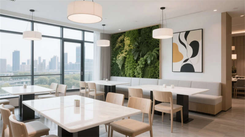 從大堂至客房,落地窗最大限度引入天光,中性色調(diào)與淺木元素構成溫暖基底。餐廳與酒吧的開放式布局促進社交,而水療中心的弧形理療床和間接光源則傳遞靜謐療愈力。健身房與泳池區(qū)通過鏡面、綠植墻和通透玻璃,模糊室內(nèi)外界限。走廊的設計進一步強化了空間的連貫性——隱藏式燈帶如星辰鋪路,藝術點綴升華細節(jié)品味,每一步都沉浸于流動的簡約詩意中。整個項目摒棄冗余裝飾,用材質(zhì)本真與光影敘事,在合肥城市肌理中打造出一處“寧靜的歸心之所”。