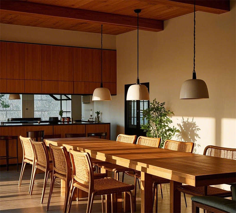 這套1000平民宿設(shè)計(jì)以自然簡約風(fēng)格為核心,營造出溫暖舒適、貼近自然的居住體驗(yàn)。整體空間以原木色調(diào)為主,搭配米白色、淺灰等柔和色彩,輔以綠植點(diǎn)綴,呈現(xiàn)出清新自然的氛圍。大堂以原木色前臺和藤編吊燈為亮點(diǎn),搭配落地窗引入充足光線,營造出溫馨的迎賓空間。客廳采用開放式布局,原木地板與編織地毯相得益彰,搭配圓形茶幾和落地?zé)?,打造出輕松愜意的休閑區(qū)域。餐廳延續(xù)自然風(fēng)格,長桌與藤編餐椅的組合簡潔大方,開放式廚房與吧臺的設(shè)計(jì)增強(qiáng)了空間的互動(dòng)性。臥室分為兩種風(fēng)格,一種以藤編床頭和棉麻床品為主,營造出舒適的睡眠環(huán)境;另一種采用日式榻榻米設(shè)計(jì),搭配推拉門和竹林景觀,傳遞出寧靜禪意的氛圍。浴室同樣注重自然元素的運(yùn)用,圓形浴缸與綠植的結(jié)合讓人仿佛置身于自然之中,而日式風(fēng)格的浴室則通過竹制裝飾和庭院景觀,進(jìn)一步強(qiáng)化了寧靜放松的體驗(yàn)。戶外庭院以石板小路和木質(zhì)平臺為主,搭配休閑桌椅和綠植環(huán)繞,為客人提供了一個(gè)親近自然的戶外休閑空間。整體設(shè)計(jì)注重材質(zhì)與光影的運(yùn)用,將自然元素與現(xiàn)代簡約風(fēng)格完美融合,打造出一個(gè)舒適、放松的民宿空間。