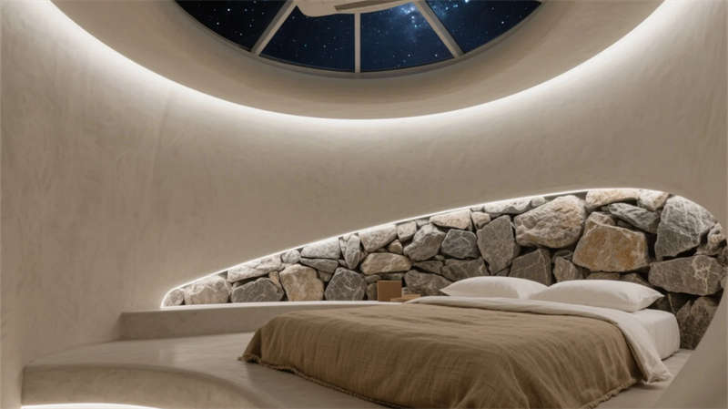 功能布局巧妙銜接室內(nèi)外呼吸感:接待廳玻璃幕墻引竹林入畫(huà),禪茶室借枯山水凝神靜氣;餐廳與書(shū)吧以可移動(dòng)家具實(shí)現(xiàn)場(chǎng)景轉(zhuǎn)換,暗藏式光源在夜間描摹空間輪廓??头吭O(shè)計(jì)強(qiáng)調(diào)私密療愈,星空穹頂與混凝土浴缸形成原始與現(xiàn)代的詩(shī)意碰撞。