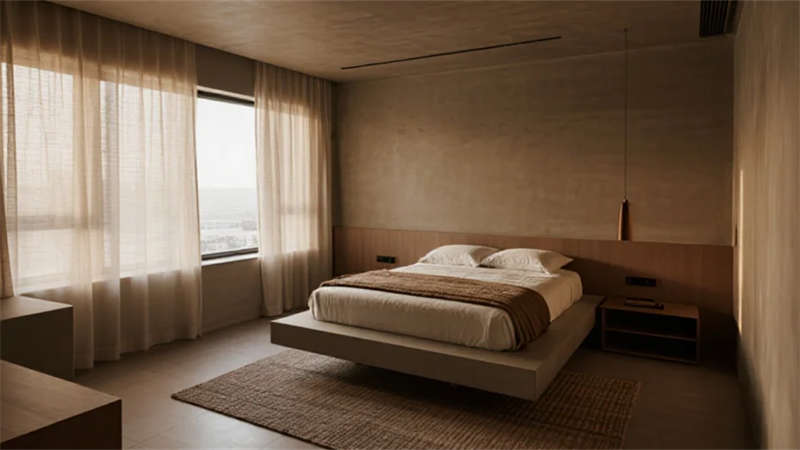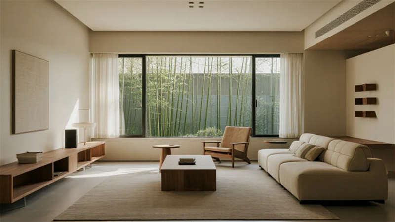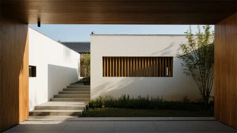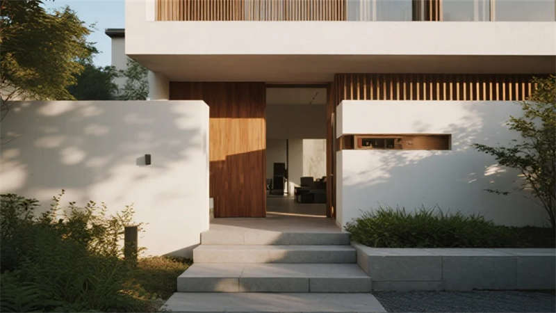 該設(shè)計(jì)以現(xiàn)代簡約語言重構(gòu)居住本質(zhì),將自然光影作為空間敘事的主角。建筑外觀采用純凈的幾何體塊組合,原木格柵與純白墻面對話,形成克制而溫暖的初印象。室內(nèi)摒棄冗余裝飾,通過微水泥的質(zhì)樸肌理、實(shí)木的溫潤觸感以及亞麻織物的呼吸感,構(gòu)建出具有生命力的簡約美學(xué)。