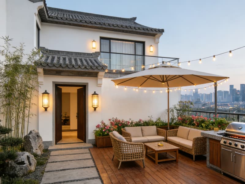 細(xì)節(jié)設(shè)計(jì)中,選用環(huán)保實(shí)木、天然石材等溫潤(rùn)材質(zhì),燈光采用分層設(shè)計(jì)(公共區(qū)暖光氛圍燈、客房柔和閱讀燈),公共區(qū)域設(shè)置共享洗衣房與行李寄存區(qū),提升旅居便捷性;同時(shí)植入本地非遺手作裝飾(如徽州竹編、剪紙),強(qiáng)化空間文化歸屬感。整體設(shè)計(jì)既保留民宿的人文溫度,又通過(guò)輕奢質(zhì)感與智能配套,為客人打造兼具文化體驗(yàn)與舒適旅居的優(yōu)質(zhì)休憩載體。