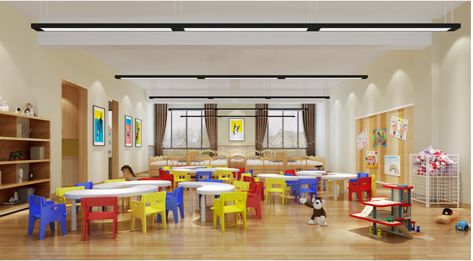由于線條簡單、裝飾元素少,現(xiàn)代簡約需要軟裝來配合。如沙發(fā)與玩具等。軟裝到位是現(xiàn)代粉飾的關(guān)鍵。多功能的個性空間功能與空間組織,主要以木色為主,沒有太重,太跳的的顏色。以簡潔的造型和別出心裁的擺放,打造溫馨,優(yōu)質(zhì)的幼兒園環(huán)境。