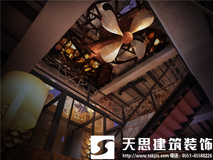 銅須水族主題會所,空間造型大氣磅礴,初入室內即被粗獷自然的設計所震撼。給人一種無限擴張的空間力量。空間材料和色彩的運用細膩而大膽,情節(jié)化的場景布置與戲劇性的張力設計營造出豐富的視覺享受。