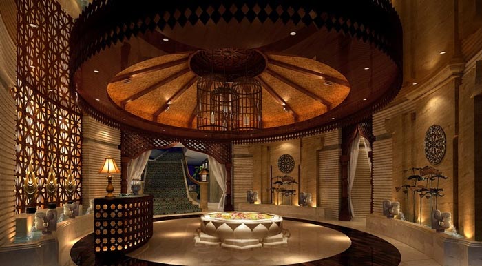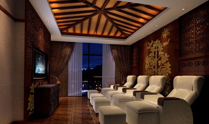 在空間及功能上,立體大氣且具有東南亞風情的接待大廳與風格典雅奢華的異域包廂相結(jié)合,再巧妙地融入東方獨到著佛教元素,從文化和生活層面?zhèn)鬟_出現(xiàn)代人對休閑養(yǎng)生的高品質(zhì)追求。