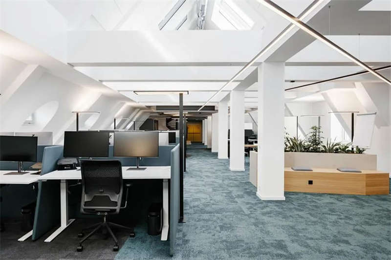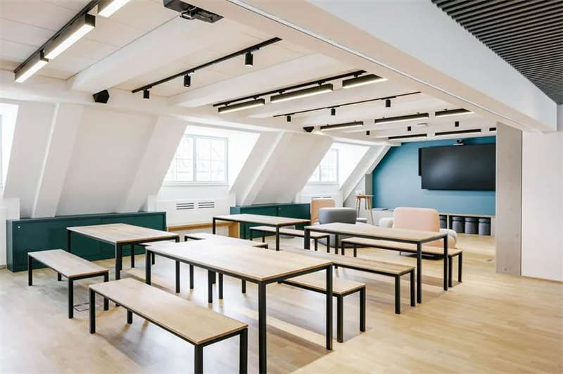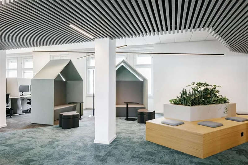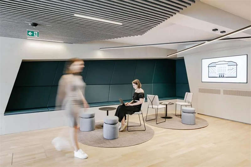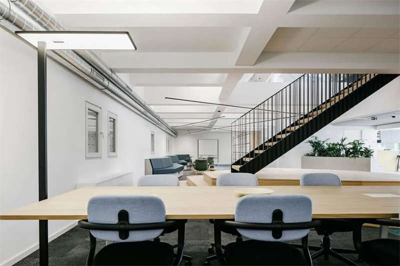 在與客戶的密切合作以及對(duì)方員工的積極參與下,設(shè)計(jì)師成功創(chuàng)建了一處精彩的工作空間,在這里,人們可以集中精力專注工作,也可以隨時(shí)隨地進(jìn)行各種不同的協(xié)作、交流、互動(dòng)和頭腦風(fēng)暴。各種不同主題的廳廊空間、靈活多元的協(xié)作空間、以及巨大的屋頂露臺(tái),讓這處空間變得獨(dú)一無(wú)二。空間隨著人們的移動(dòng)不斷變化著景觀視線和功能場(chǎng)景,豐富而精彩的設(shè)計(jì)讓這里步移景異,充滿驚喜和樂趣。