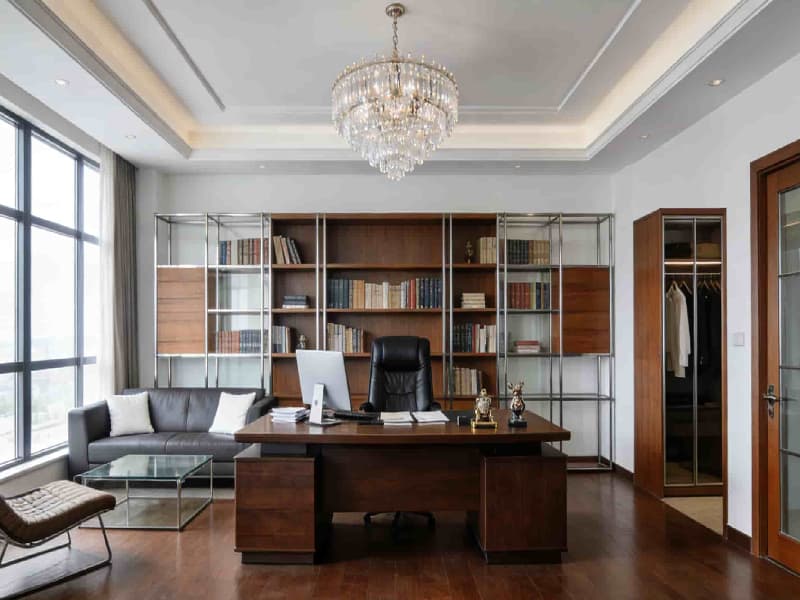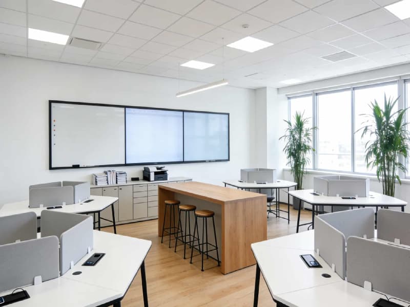 整體空間遵循現(xiàn)代簡約的設(shè)計理念,注重功能性與美觀性的平衡。色彩上以白色、灰色為主色調(diào),搭配少量木色和綠色作為點(diǎn)綴,既展現(xiàn)出工業(yè)空間的整潔與冷靜,又增添了自然溫暖的氛圍。材料選用上,追求質(zhì)感與耐用性,如金屬、玻璃、石材和木材等,通過巧妙組合,凸顯現(xiàn)代工業(yè)氣息。