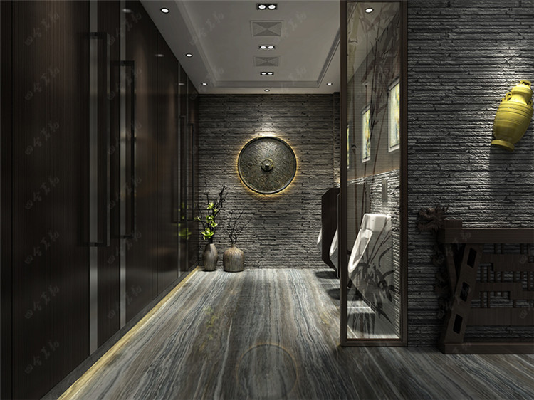 為表現(xiàn)中式傳統(tǒng)大宅的精髓,將中國傳統(tǒng)疏、密、隔、透的造園手法引入會所空間,整合空間秩序,把握空間節(jié)奏,使之開合有序,進退自如.豐富的空間層次遞進,橫向通透、縱向通達,體現(xiàn)出"中正平和"的東方哲學思想.