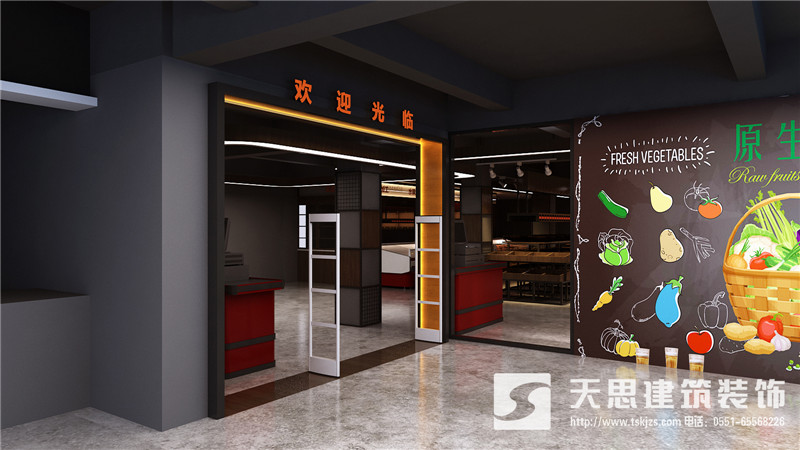 項目:東籬鮮生生活超市 面積:200㎡ 設(shè)計費用:6000 設(shè)計師:石破天