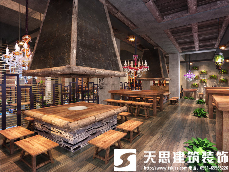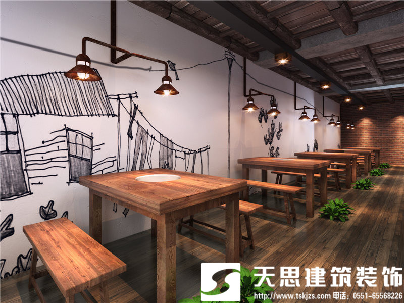 此案有別于通常的火鍋店設計,沒有明艷的色澤和雜亂的修飾,更沒有一覽無余的空間鋪排,在以市場經濟為首的時代,歸本主義的設計風格,顯得尤為獨特和罕見。采用天然材質設計空間,以原木為主基調,輔以清水混凝土和斑駁鋼鐵整合空間構架,加上簡約時尚的設計手法,整個火鍋店溫暖愜意的氛圍在設計里自然彌漫。
