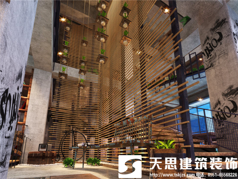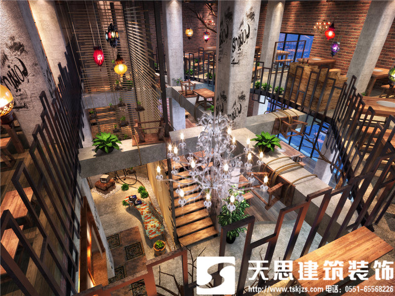 樓梯一角的別致風景,雖材質簡陋卻頗為入得人心。小板凳吧臺式火鍋店,在把握簡單大方的設計基礎上,巧用新穎造型和空間氛圍營造,打造出一個別具味道的火鍋店。