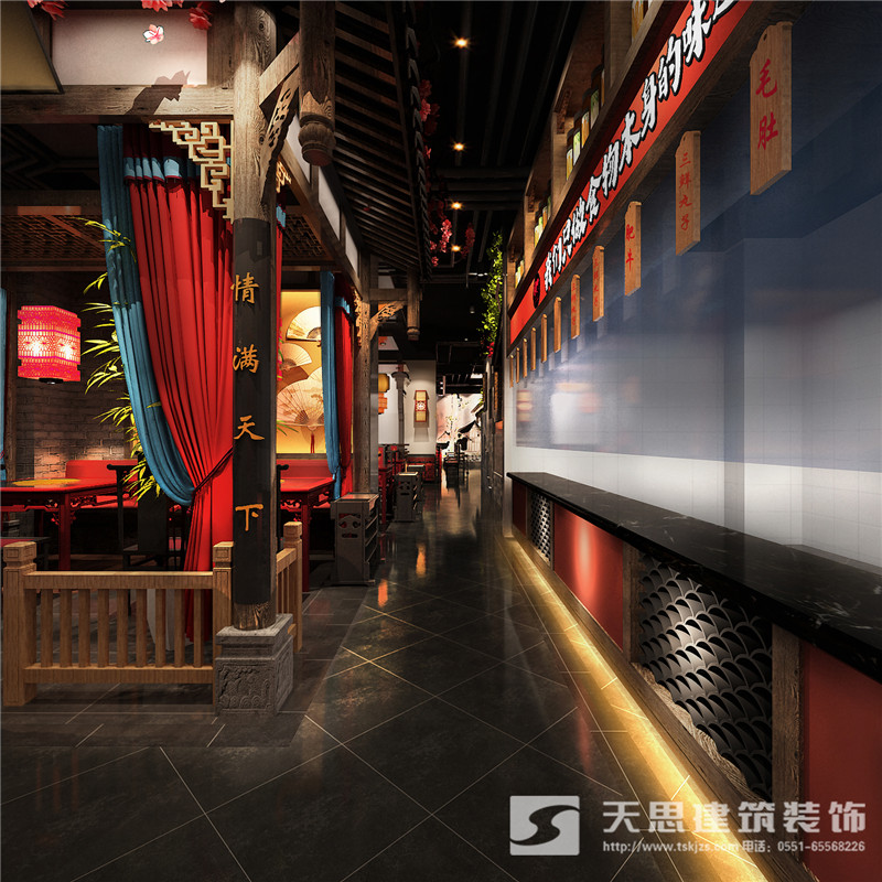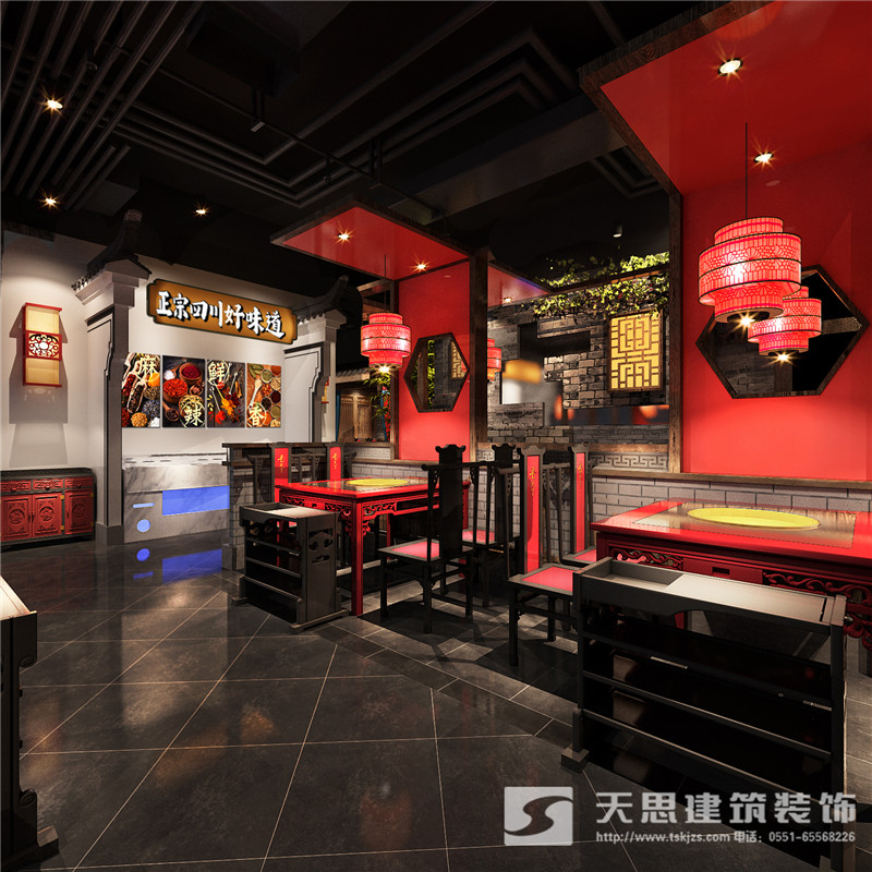 本次為合肥香天下火鍋店分店徽淮南店裝修設(shè)計(jì)效果,在本次火鍋店設(shè)計(jì)中,設(shè)計(jì)師采用新中式做為空間設(shè)計(jì)風(fēng)格,設(shè)計(jì)師希望讓客戶(hù)在這里感受到不一樣的氛圍。