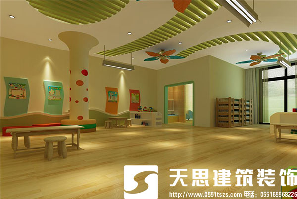好的幼兒園裝修設(shè)計(jì)必須充分體會到孩子的需要,讓孩子們健康快樂的學(xué)習(xí)和成長,才是幼兒園設(shè)計(jì)成功的關(guān)鍵。要使幼兒在適合他們健康成長的環(huán)境中生活。安全、衛(wèi)生是重要的條件,幼兒園環(huán)境創(chuàng)設(shè)必須服從于衛(wèi)生和安全的要求,以保證幼兒的安全成長。合肥裝飾公司天思建筑裝飾公司您身邊的裝修專家,裝修詳情盡情咨詢:http://m.qclox.cn/