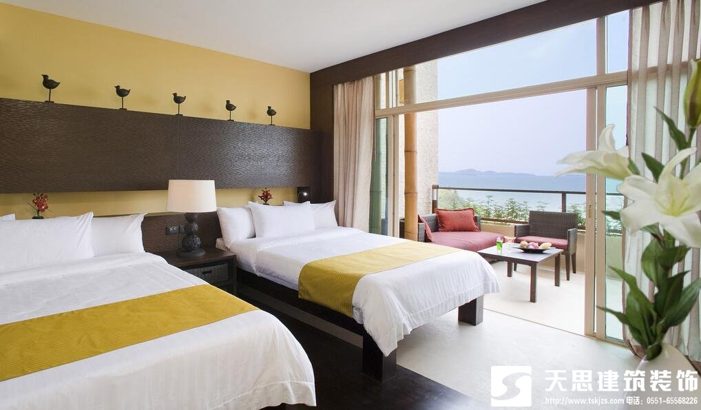 其次是賓館裝修設計時虛實對比的運用。對于賓館室內環(huán)境而言,可以借助山、水、石、木、花、等來突出裝修的重點;也可以利用光、影、氣、聲、風等通過合理的構思組合,使得室內裝修設計的風格具有宜人的意境,更好的突出了裝修設計的獨特之處。