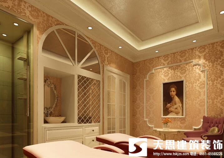 通過(guò)更換圖片,給美容院顧客以新穎之感,屏風(fēng)和隔斷的設(shè)計(jì)要考慮可移動(dòng)性,如果能再配備燈光,個(gè)性的飾品點(diǎn)綴,具有現(xiàn)代感的流行線條等,就會(huì)給顧客一種美的享受。