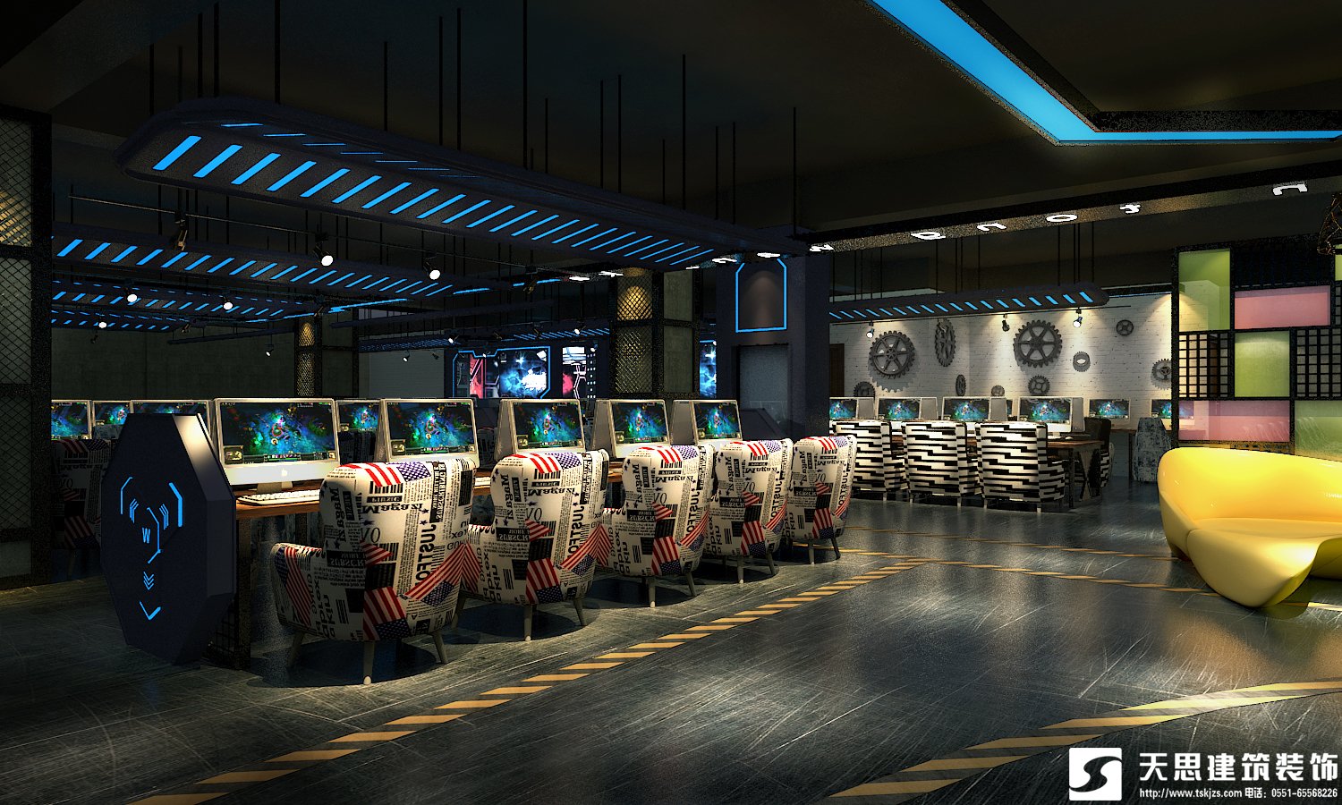 網(wǎng)吧裝修設(shè)計(jì)想要有創(chuàng)意和新穎,網(wǎng)吧裝修設(shè)計(jì)就要具備更好的元素展示出時(shí)尚的店面。