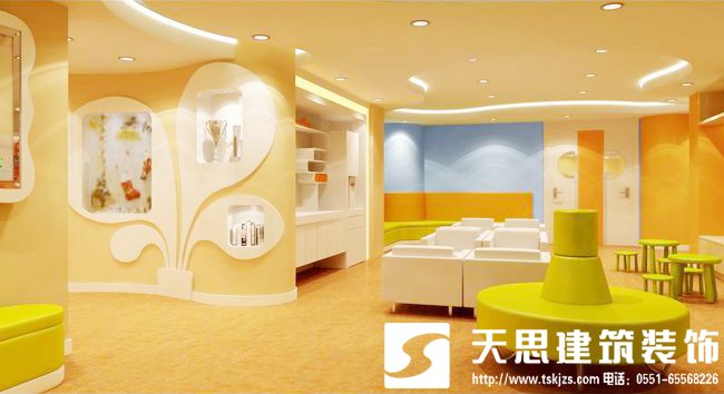 在幼兒園裝修中,一般情況下,幼兒園室內(nèi)高度以3.2-4米為宜。否則太低會(huì)令幼兒產(chǎn)生壓抑、緊張感;過(guò)高則讓幼兒感到缺乏溫馨、親切的氛圍。因此,樓層的高低宜在建筑設(shè)計(jì)時(shí)給予充分考慮??紤]到目前部分幼兒園的室內(nèi)空間不符合標(biāo)準(zhǔn),如果是過(guò)高的空間,可考慮頂面裝修或懸吊一些裝飾物,以降低其空間,改變視覺上的空曠感。