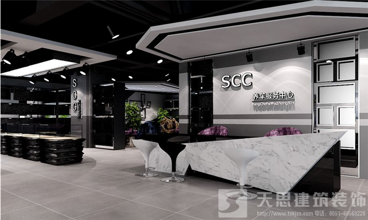 汽車美容店裝修的時候圍繞店面的定位,挖掘品牌核心點,圍繞著這個點,進行有創(chuàng)意的視覺設計和氛圍設計。制造汽車美容店的項目特色和店內氛圍、突出店面品牌形象、增強產品的陳列擺放的銷售吸引力。